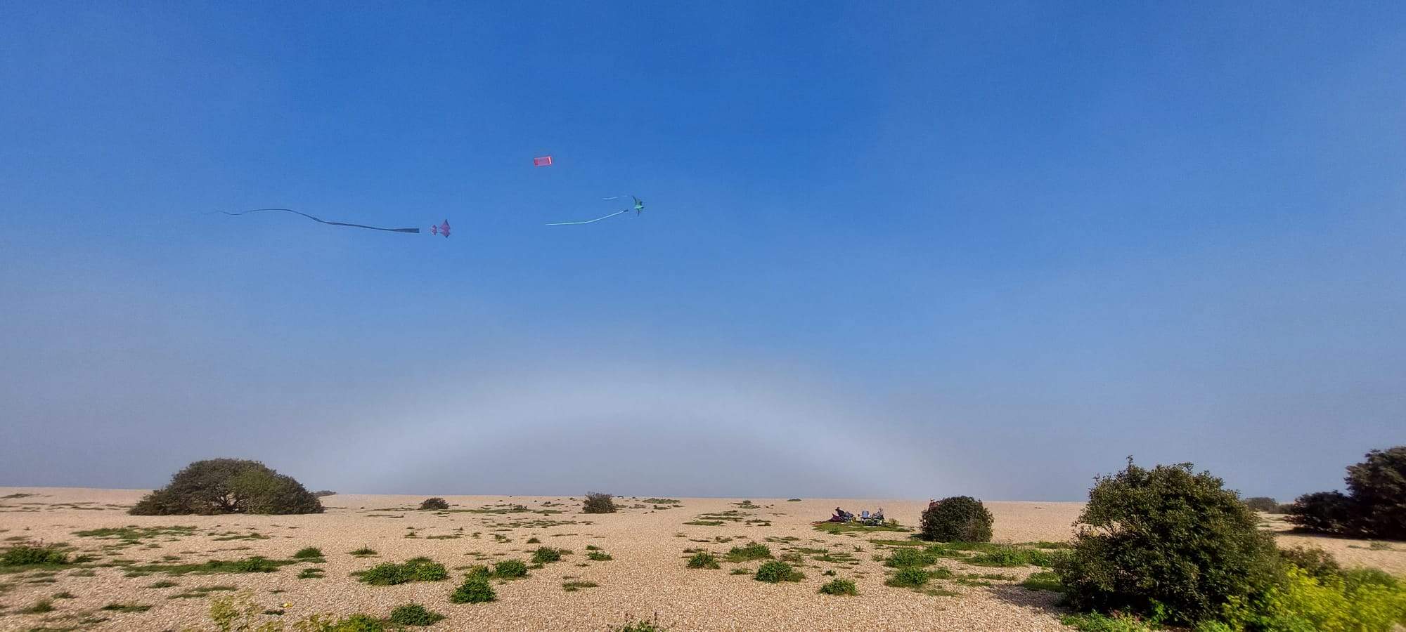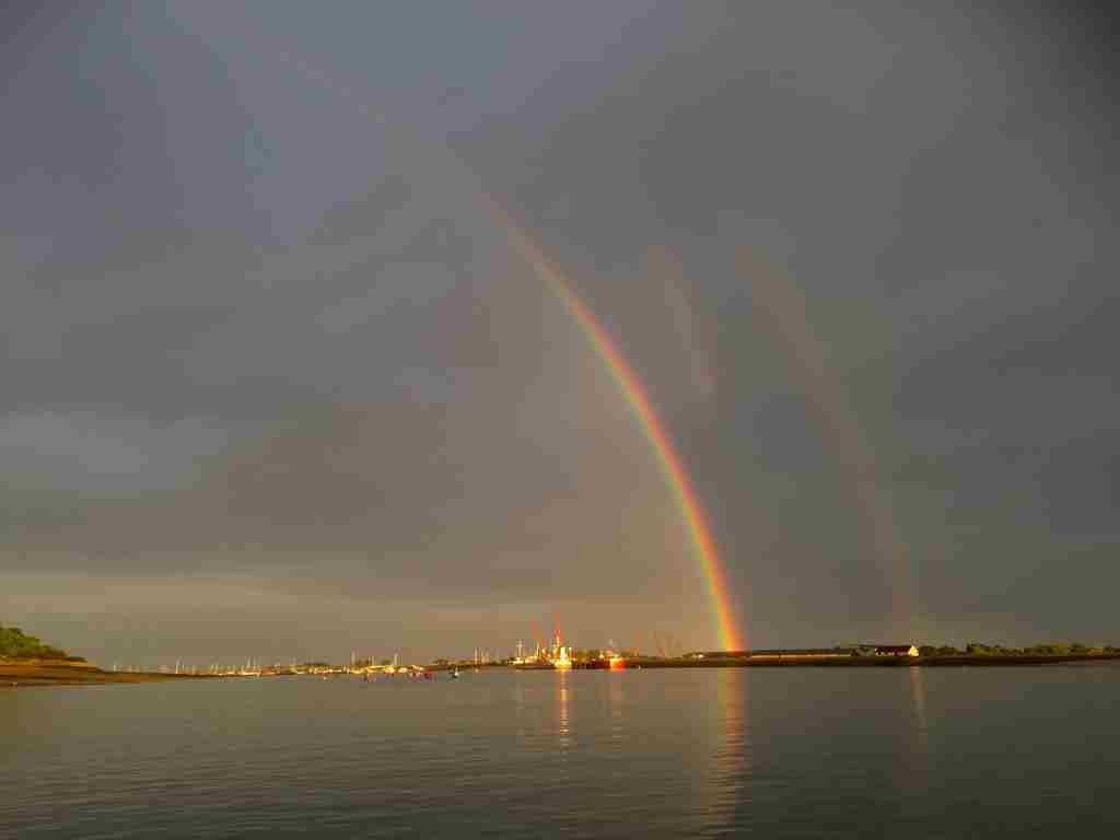 At 6.35pm Kevin was walking along the marshes to the West of Deal looking East towards the sea, about 700 metres from the beach when he saw the rainbow and used his Samsung A52s mobile phone to take the photo.