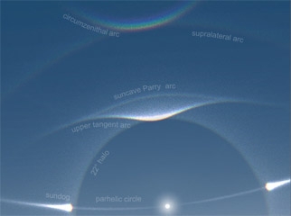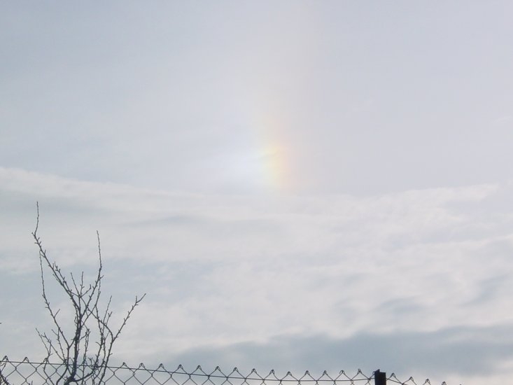 A sun dog is also called a parhelion (plural parhelia) and is an atmospheric optical phenomenon that consists of a bright spot to one or both sides of the Sun. The sun dog is a member of the family of halos caused by the refraction of sunlight by ice crystals in the atmosphere.