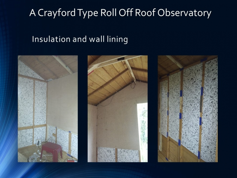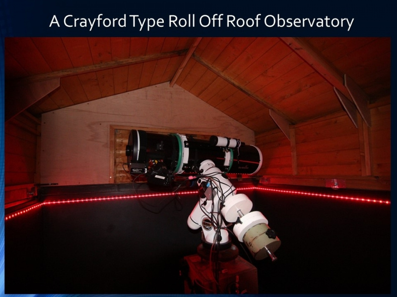 I have been a member of the Crayford Manor House Astronomical Society for 25 years many members were helpful with ideas and Steve, recently retired, helped with the construction, the observatory design is named after the society, and I believe it to be unique.
